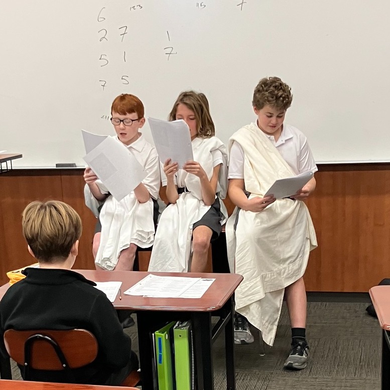In Form I Social Studies, fifth graders were introduced to the life of Julius Caesar. Three students claimed to be the real Caesar, but only one was telling the truth. The other two were imposters. Using clues from each presentation, the rest of the class had to decide who was authentic.
