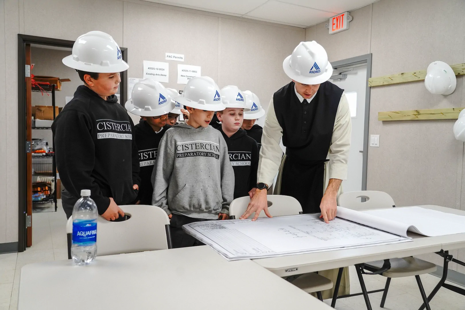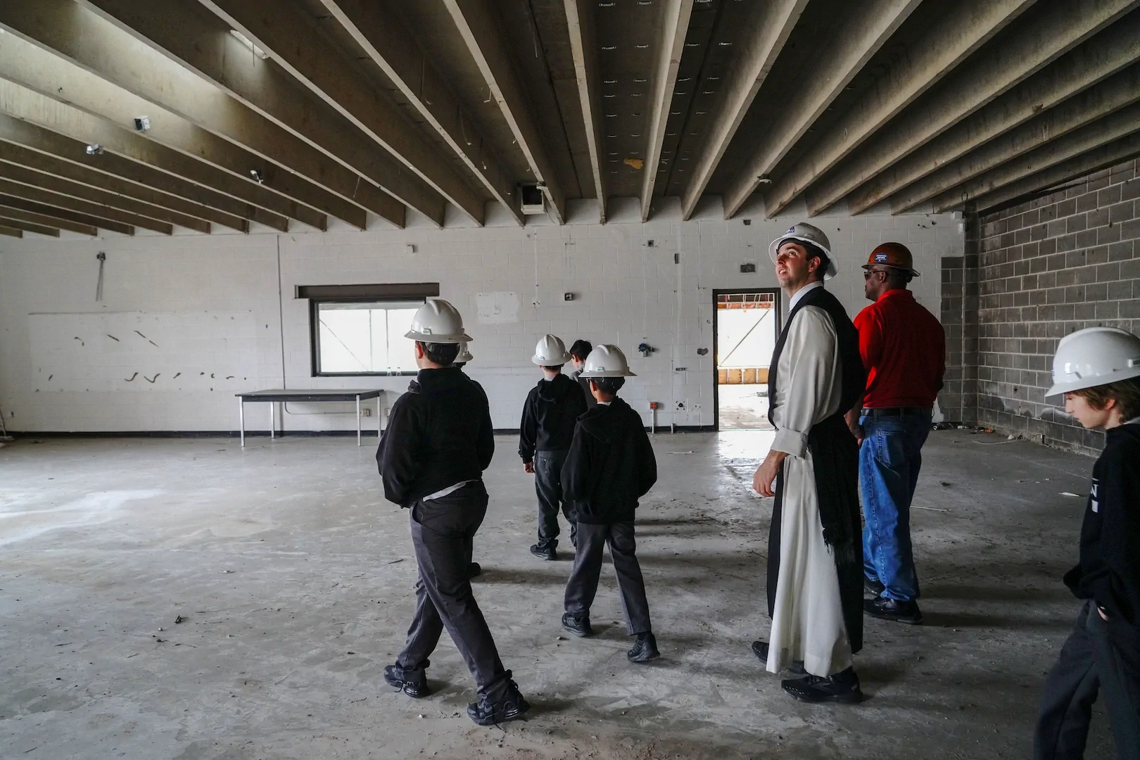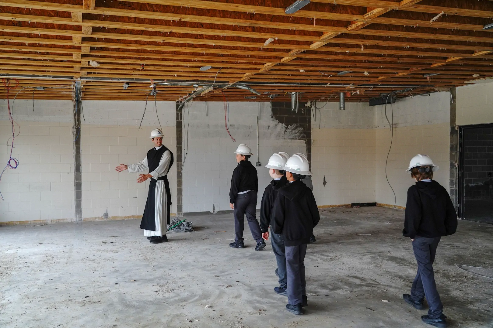 This week, Fr. Christopher walked with his Form I students through the former art and music rooms, now cleared and ready for demolition. The boys studied blueprints and caught a glimpse of what’s next. A new Performing Arts Center, coming soon!