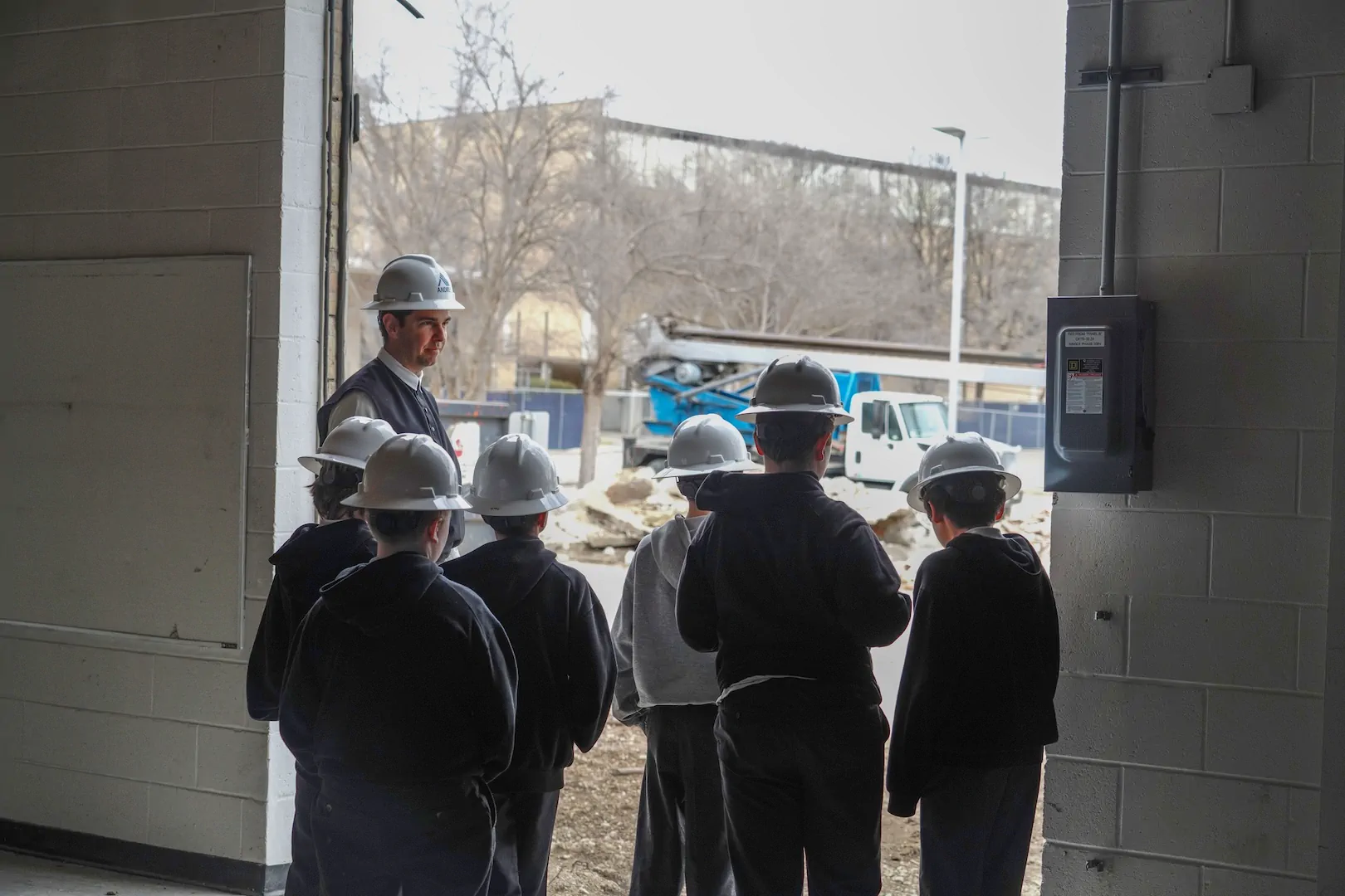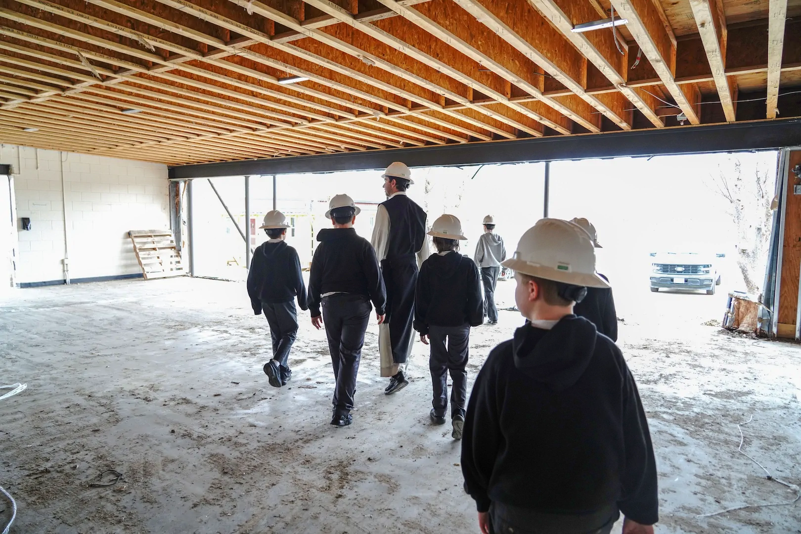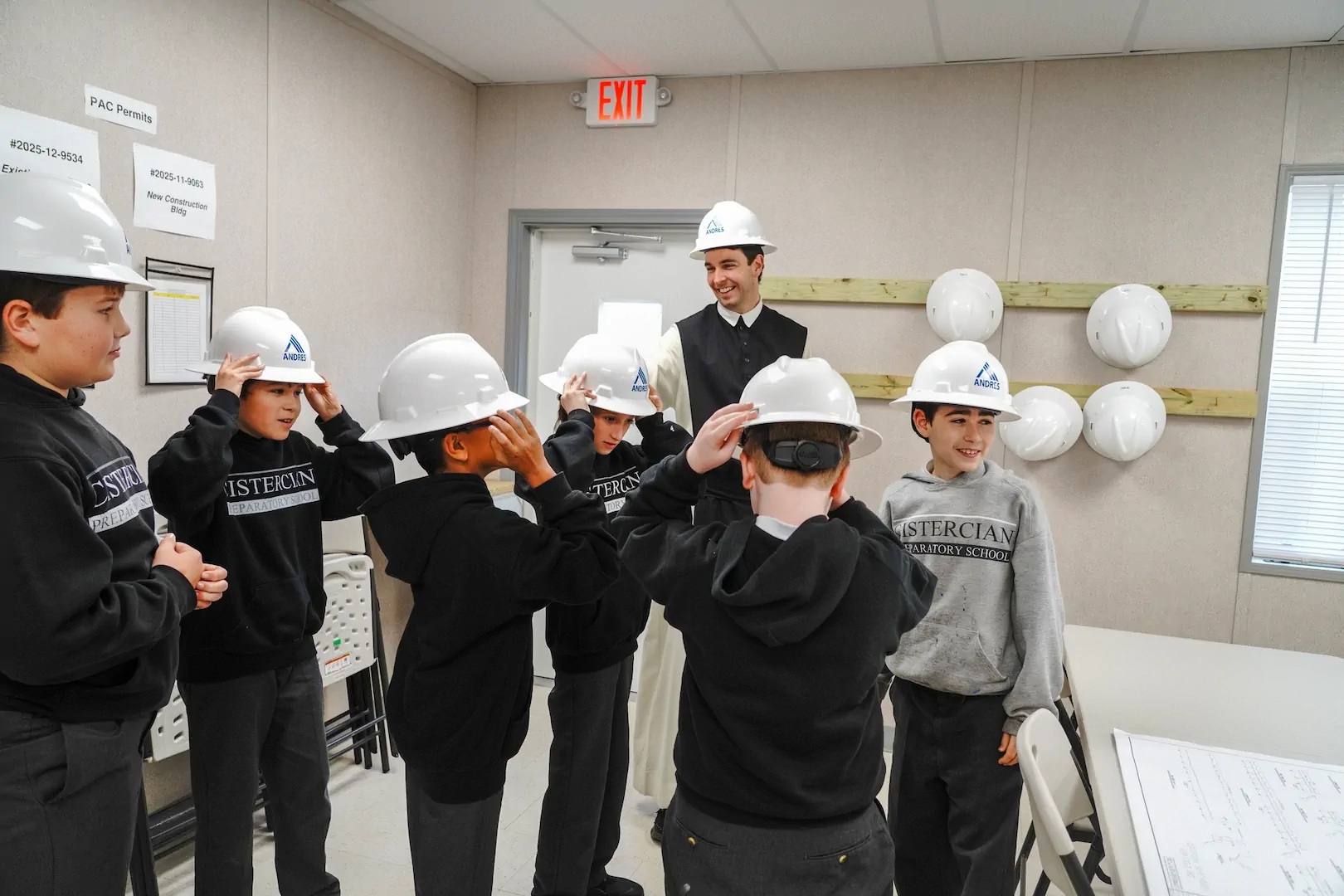 This week, Fr. Christopher walked with his Form I students through the former art and music rooms, now cleared and ready for demolition. The boys studied blueprints and caught a glimpse of what’s next. A new Performing Arts Center, coming soon!